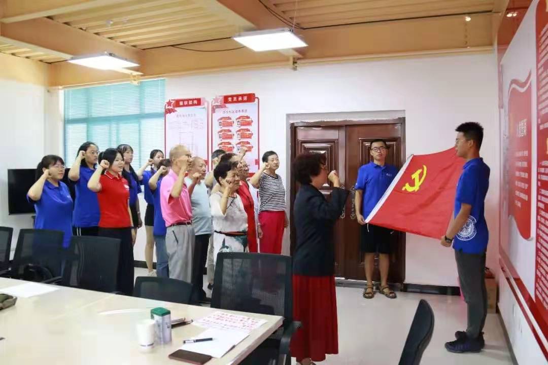 实践团被两位老党员深深地感动了,也充分认识到什么是共产党员的理想信念。随后,实践团组织开展了重温入党誓词活动。在西仪社区慈善老年大学校长的带领下,实践团与社区老党员共同举起右手,庄严地朗读着入党誓词的每一个字,怀念着自己的初心和使命,在党旗面前达成了共识。