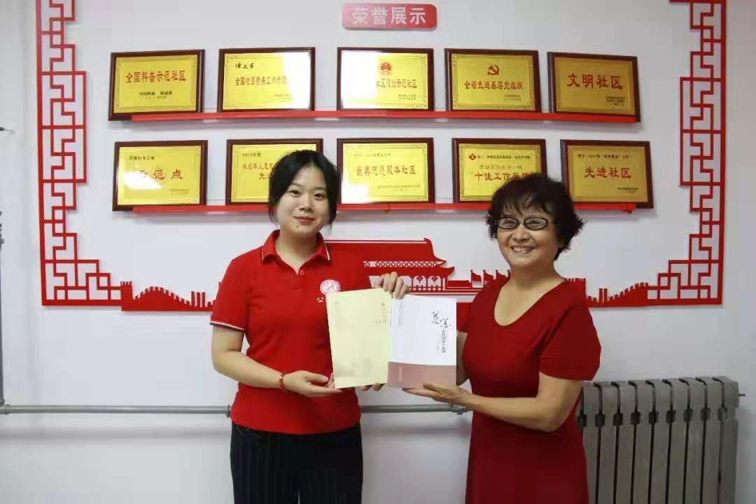 在本次活动最后,我院团委书记李鑫老师代表实践团向西仪社区慈善老年大学校长赠送慈善书目,旨在促进老人对慈善文化的了解与认知。同时,实践团还为社区老人带来了有关健康生活方法的书籍,希望老人的晚年生活能够健康快乐。
