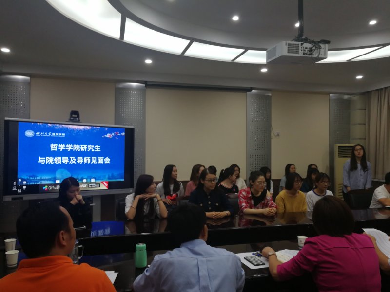 2018年9月14日晚上,437必赢会员中心在长安校区5427视频会议室举行研究生与院领导及导师见面会。学院党政领导班子全体成员、哲学和社会学专业全体学术学位研究生导师以及学院团委书记、研究生秘书出席了本次见面会。见面会由学院党委书记李波主持。