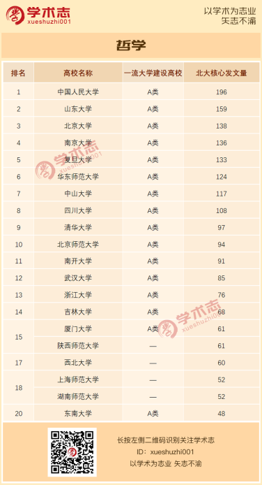 哲学学科北核期刊论文发表量跃居全国高校第17位