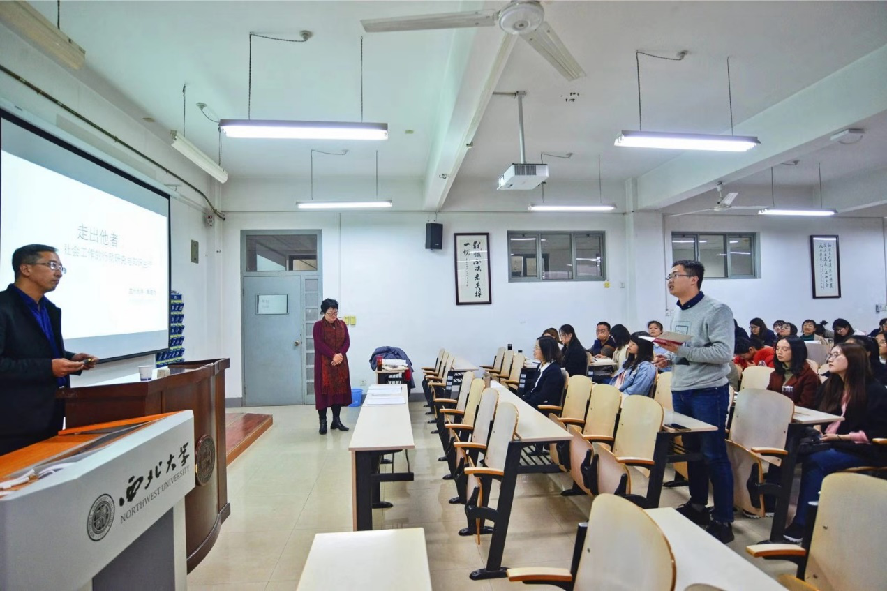 11月14日下午2点30分,兰州大学西北少数民族研究中心副教授焦若水老师应邀做客我院,于长安校区1408教室做了主题为“走出他者:社会工作的行动研究与知识生产”的学术讲座。我院社会学研究生、社会工作专业硕士研究生、部分社会工作专业本科生及陕西师范大学部分社会工作专业硕士研究生参加了此次学术交流活动。