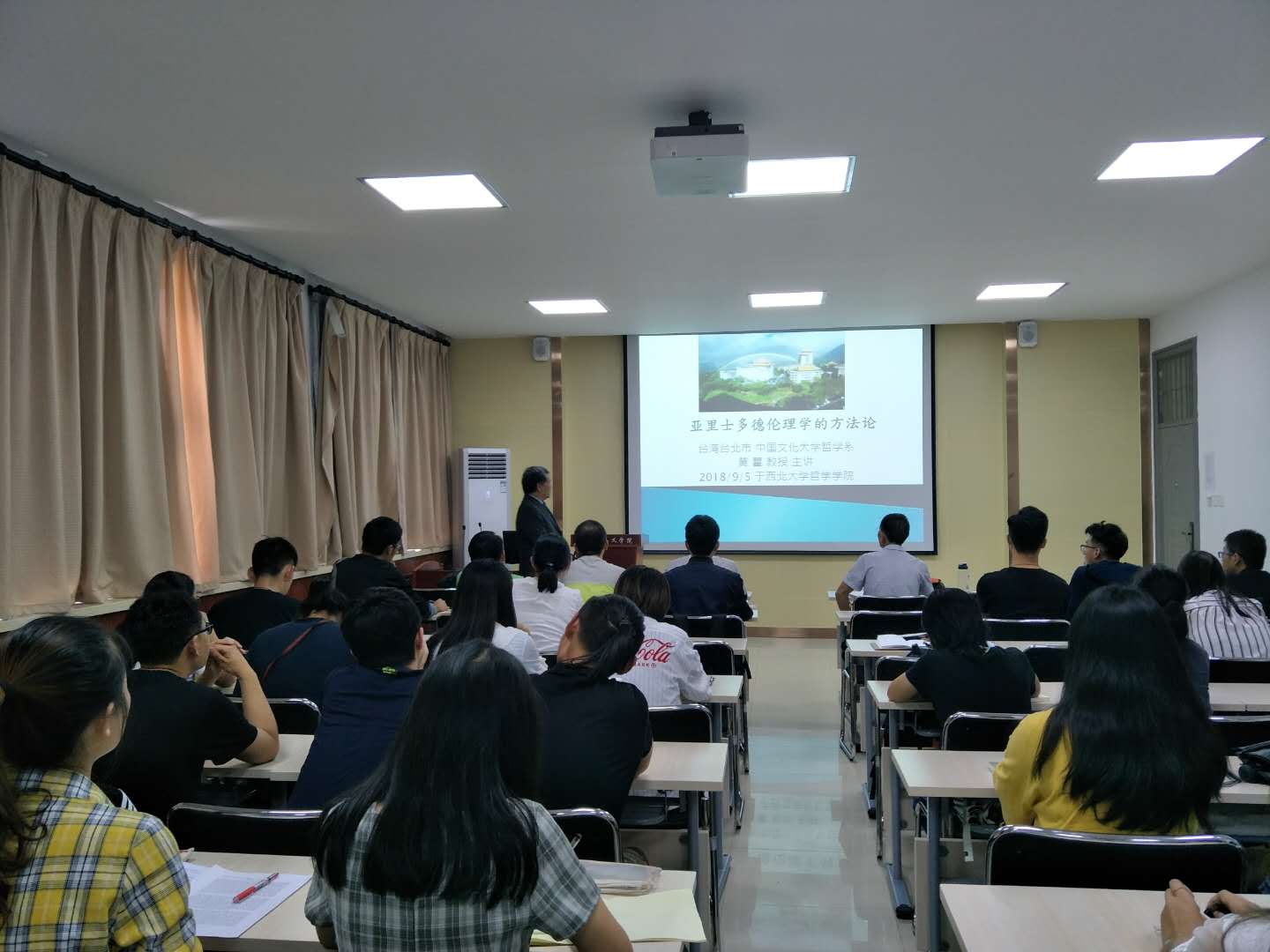 9月5日下午,台湾中国文化大学文学院院长黄藿教授,为哲学学院师生作了以“亚里士多德伦理学的方法论” 为题的学术报告。报告由哲学学院院长张学广教授主持。